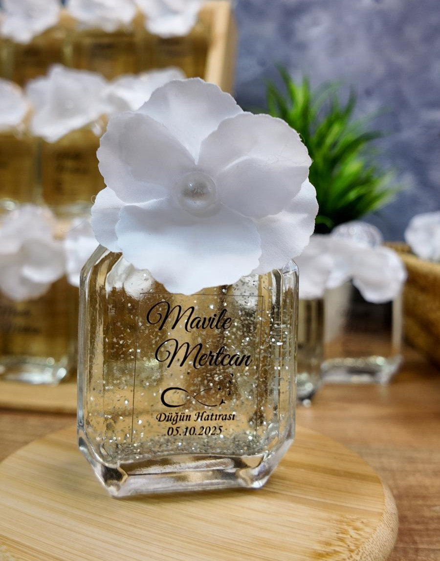 İsme Özel Çiçek Süslemeli Şişe Kolonya – Model 104